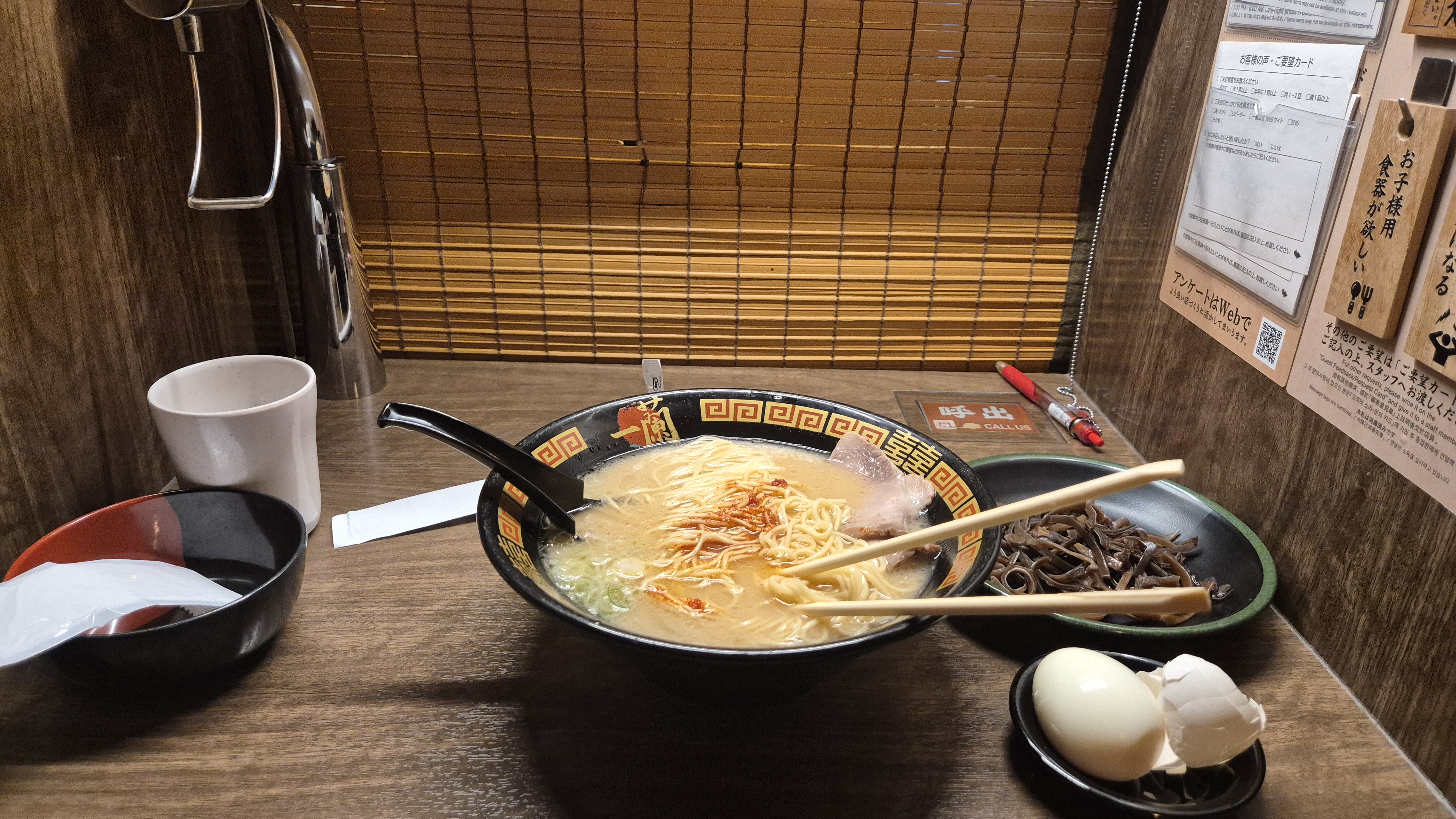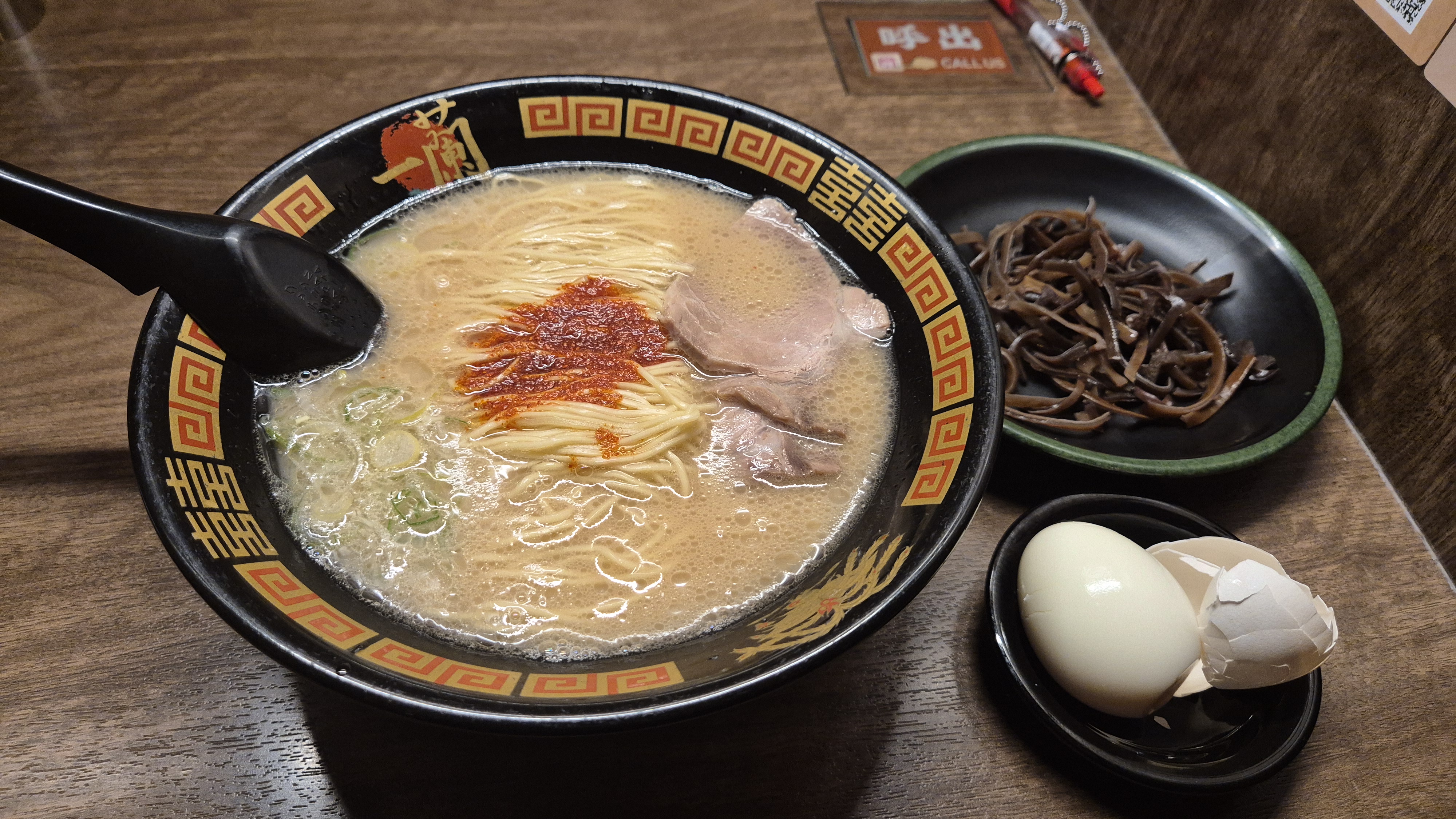 삶은 계란이 나왔고 조금 더 기다리니 라멘과 추가메뉴가 나왔어요.