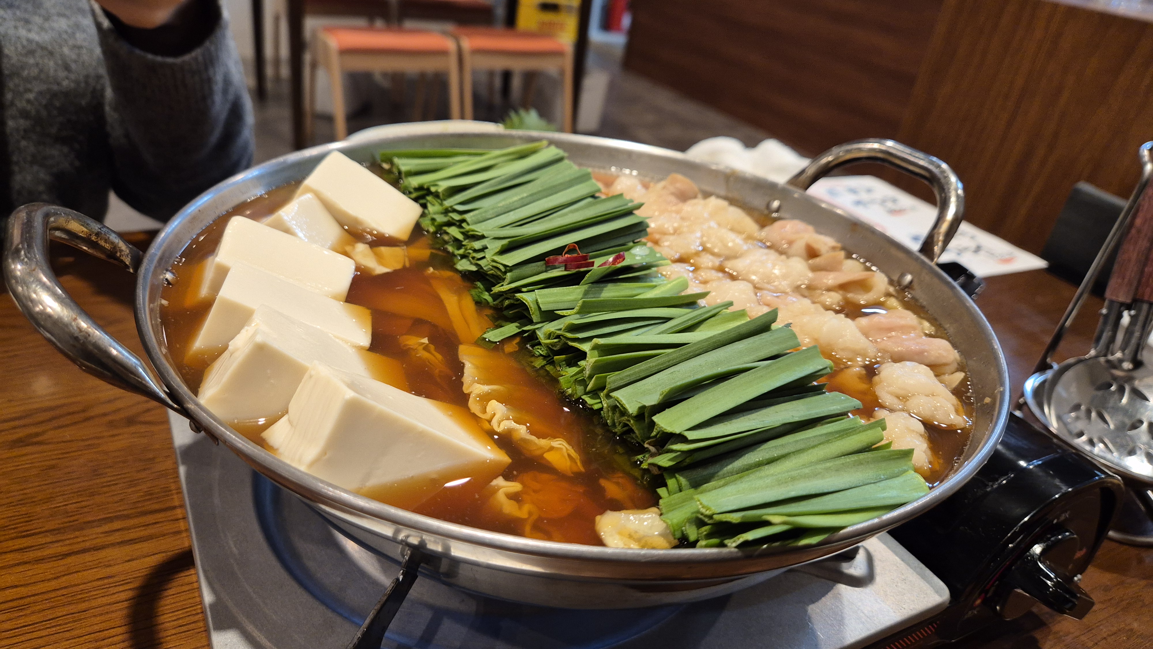 모쯔나베에 들어가는 두부가 비지를 만들지 않고 만든 식감이었어요. 단단하지 않고 푸딩 같은 느낌.