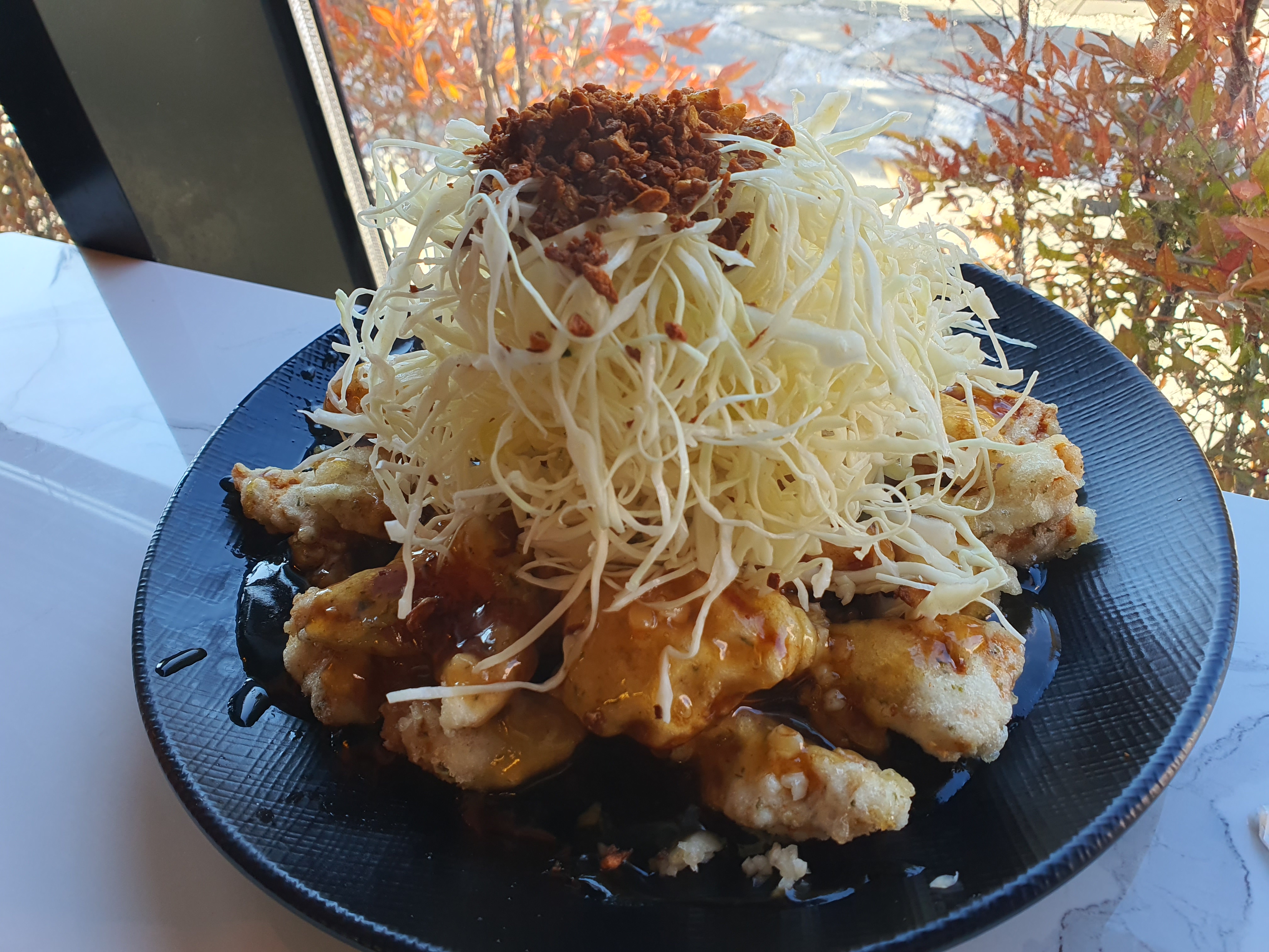 허브숙성 마늘 탕수육은 고기 위에 양배추, 그 위에 마늘 크런치가 있었습니다. 양배추와 마늘 크런치와 탕수육과 함께 먹으면 맛이 좋았습니다. 고기와 소스에도 마늘이 사용되어 고기의 잡내는 없었고 마늘의 향과 맛이 나서 좋았었습니다.... 배가 부를 때까지는요 ㅎㅎ 시간이 지나면서 탕수육이 식고, 배가 부르니 마늘맛과 향이 조금 부담스러웠어요... 주문하실 때는 정량으로 하시는 게 맞습니다.ㅎㅎ