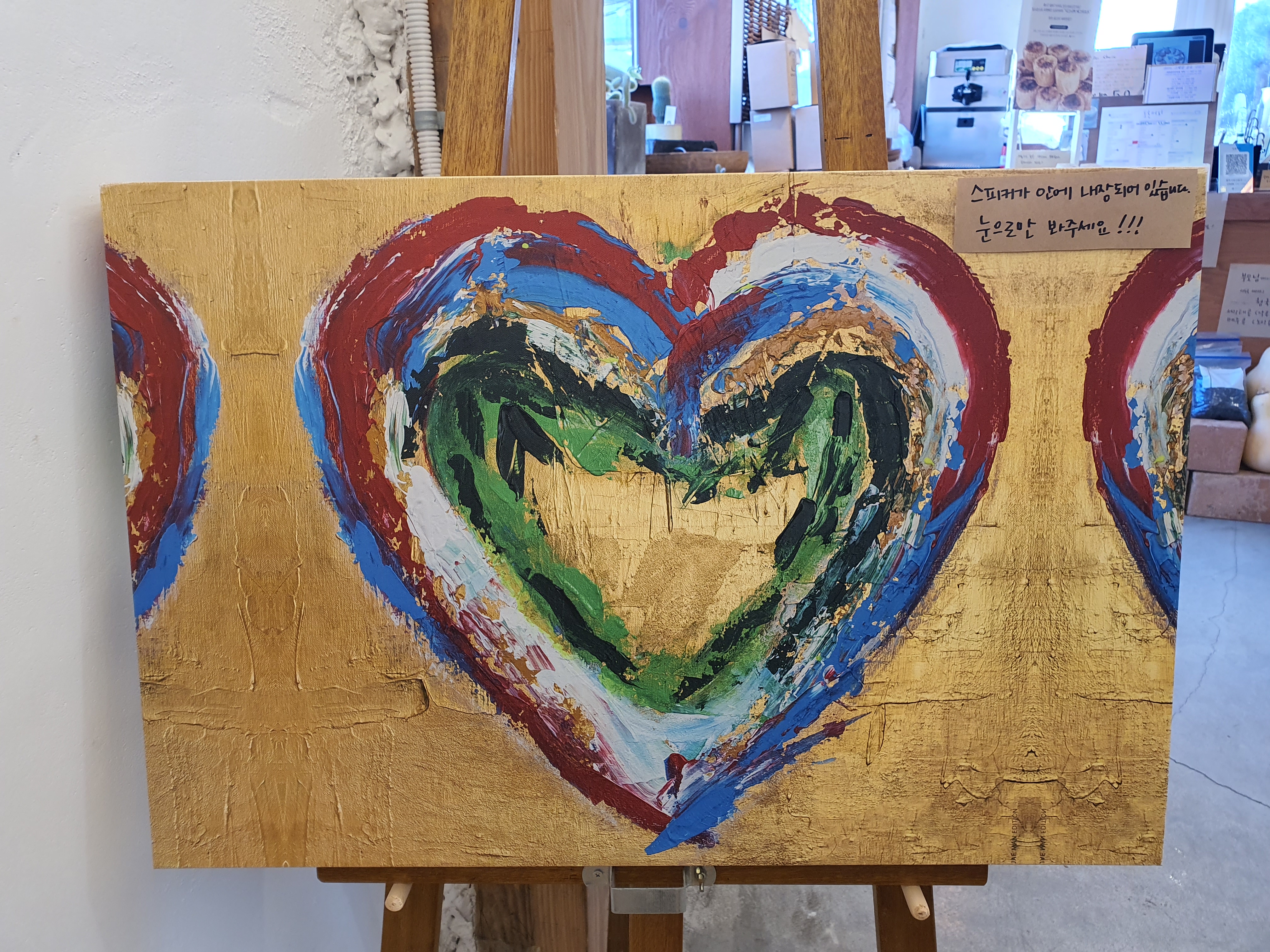 이 캔버스에 그림이 멀리서도 눈에 띄어 가까이 가서 봤는데요. 스피커였습니다. ㅎㅎ