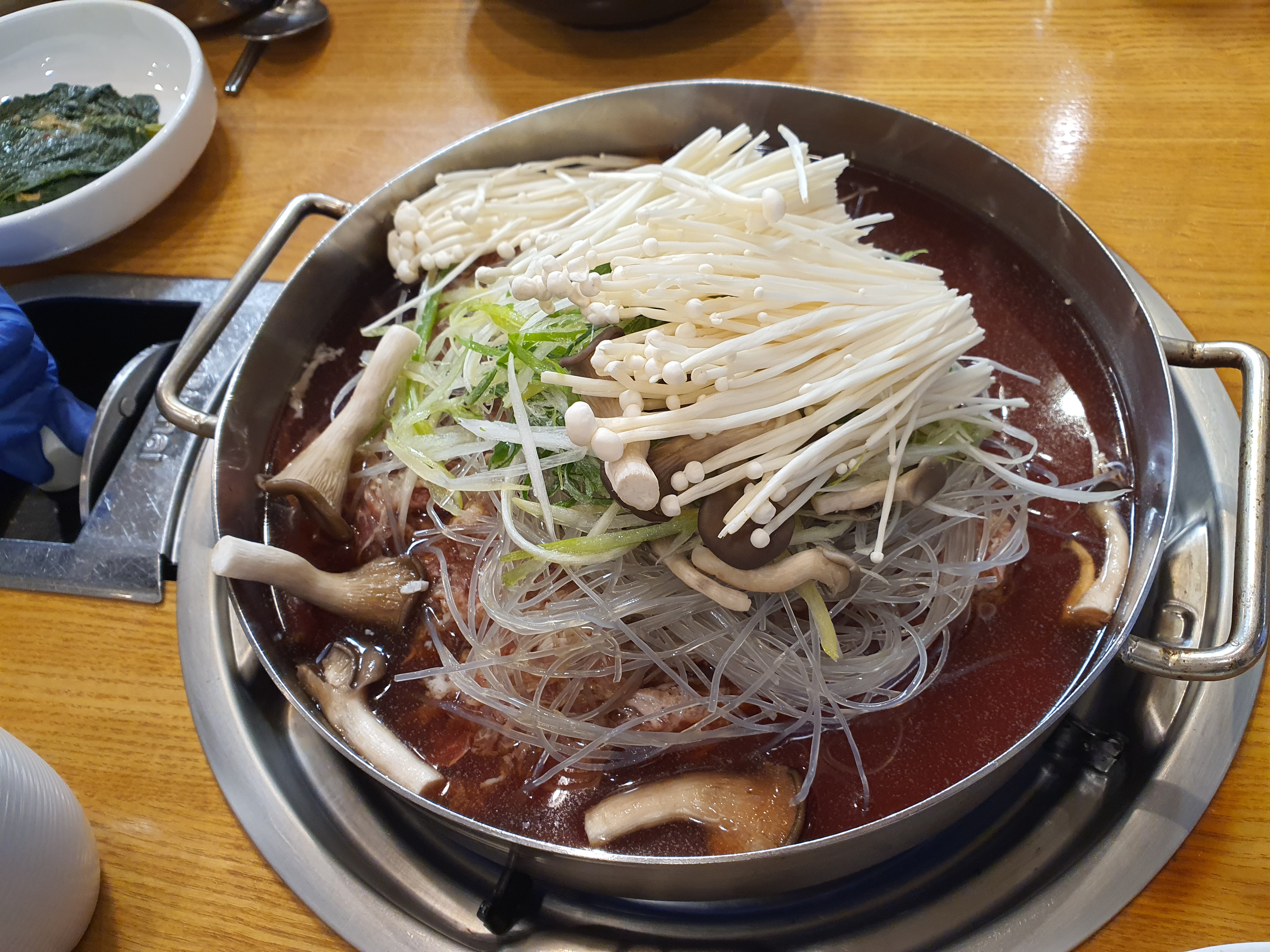 불고기 전골은 당면과 야채와 고기 쪼끔~~ㅎㅎ 이 달달한 국물에 보글보글 끓이면서 먹으니 자주 먹어봤던 맛으로 맛있게 먹었습니다.